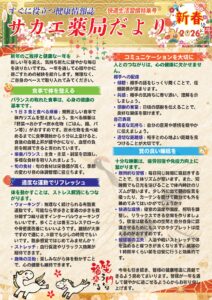 サカエ薬局だより 2026年春号 2026.01.5 サカエ薬局だより Post Share Hatena Pocket RSS feedly Pin it サカエ薬局だより2026年 春号 Post Share Hatena Pocket RSS feedly Pin it 投稿者: 薬局サカエ サカエ薬局だより コメント: 0 サカエ薬局だより 2025年夏号前の記事